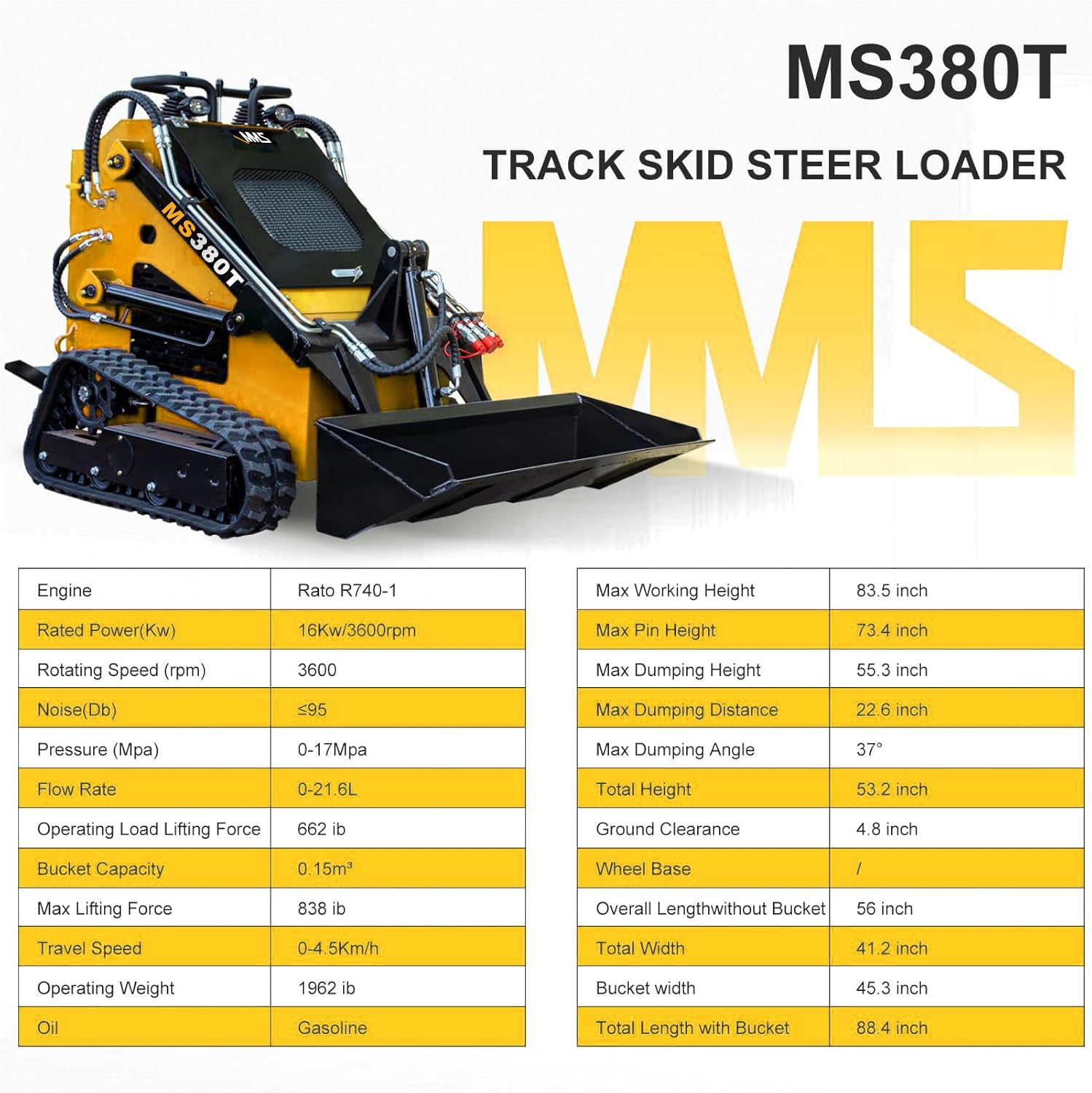MMS 380T Small Sliding Loader Triangle Track Model - Suitable for efficient partners working in narrow spaces and complex terrainsRedefine efficient homework! A small skid steer loader designed specifically for complex terrains and compact spaces, equipped with a triangular track system that combines maneuverability, stability, and versatility, helping you easily tackle challenges in multiple scenarios such as construction sites, farms, municipal engineering, and snow clearing!